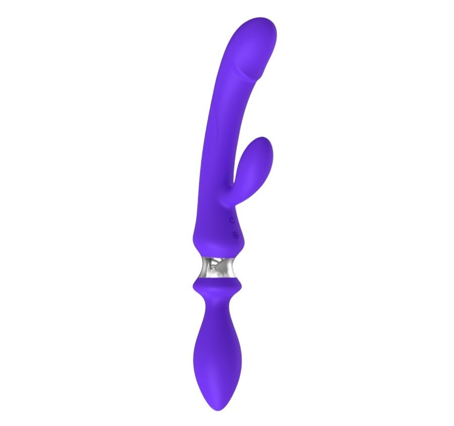 Этот двухконечный вибратор выполнен из силикона - очень нежного и приятного на ощупь материала, не вызывающего аллергии и дискомфорта. Имеет два рабочих конца - один это классический вибратор-кролик с изогнутой формой и второй в форме анальной втулки. В каждом конце игрушки находится по мощному моторчику. Вибратор водонепроницаем, так что с ним можно смело играть в ванной и душе. Благодаря своей уникальной форме его можно пользоваться для вагинальной, анальной стимуляции, ласк клитора, сосков, пениса и мошонки. Также игрушка подарит массу удовольствия как одному человеку, так и любой паре.