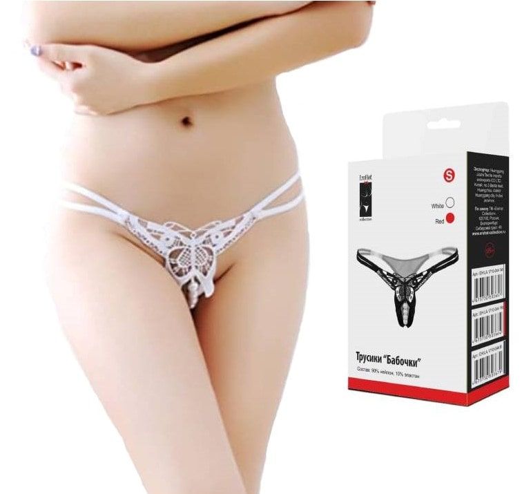 Прелестные трусики с доступом и бусами на самом пикантном месте! Передняя часть белья украшена гипюровой бабочкой, что добавляет легкости и невинности.