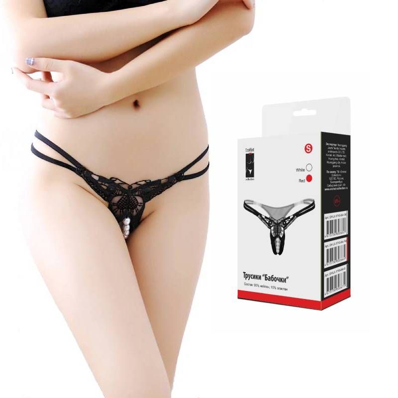 Прелестные трусики с доступом и бусами на самом пикантном месте! Передняя часть белья украшена гипюровой бабочкой, что добавляет легкости и невинности.